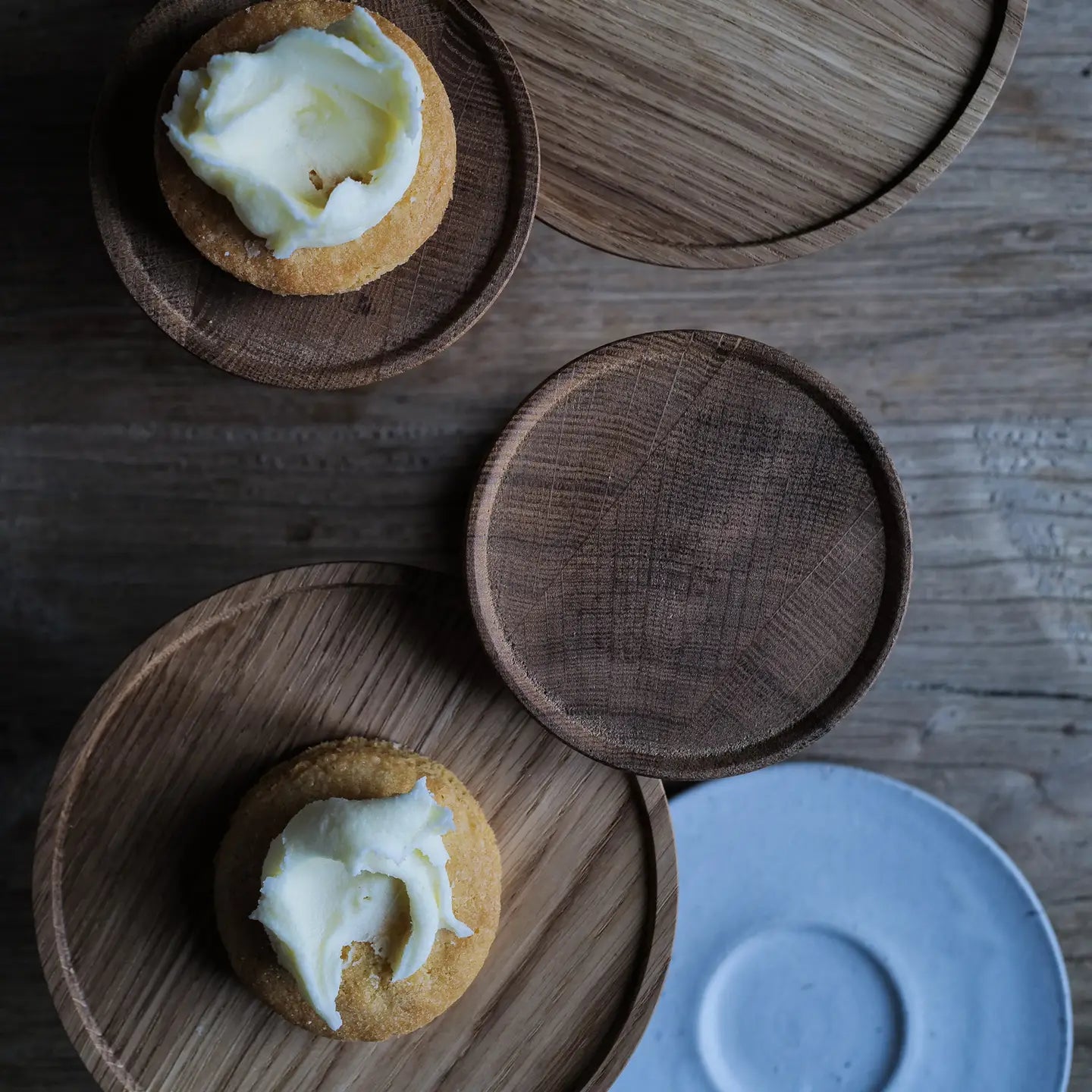 Oiled oak candle stand. Perfect for placing our big candles, decorating the table or serving a small cake. The candle stands are wood turned from oak in a carpentry workshop in Lithuania. They are made from FSC certified wood left from furniture production. Made from natural material these candle stands may differ slightly in colour and pattern of wood; we hope you will enjoy your own. Height 9 cm, diameter 15 cm.