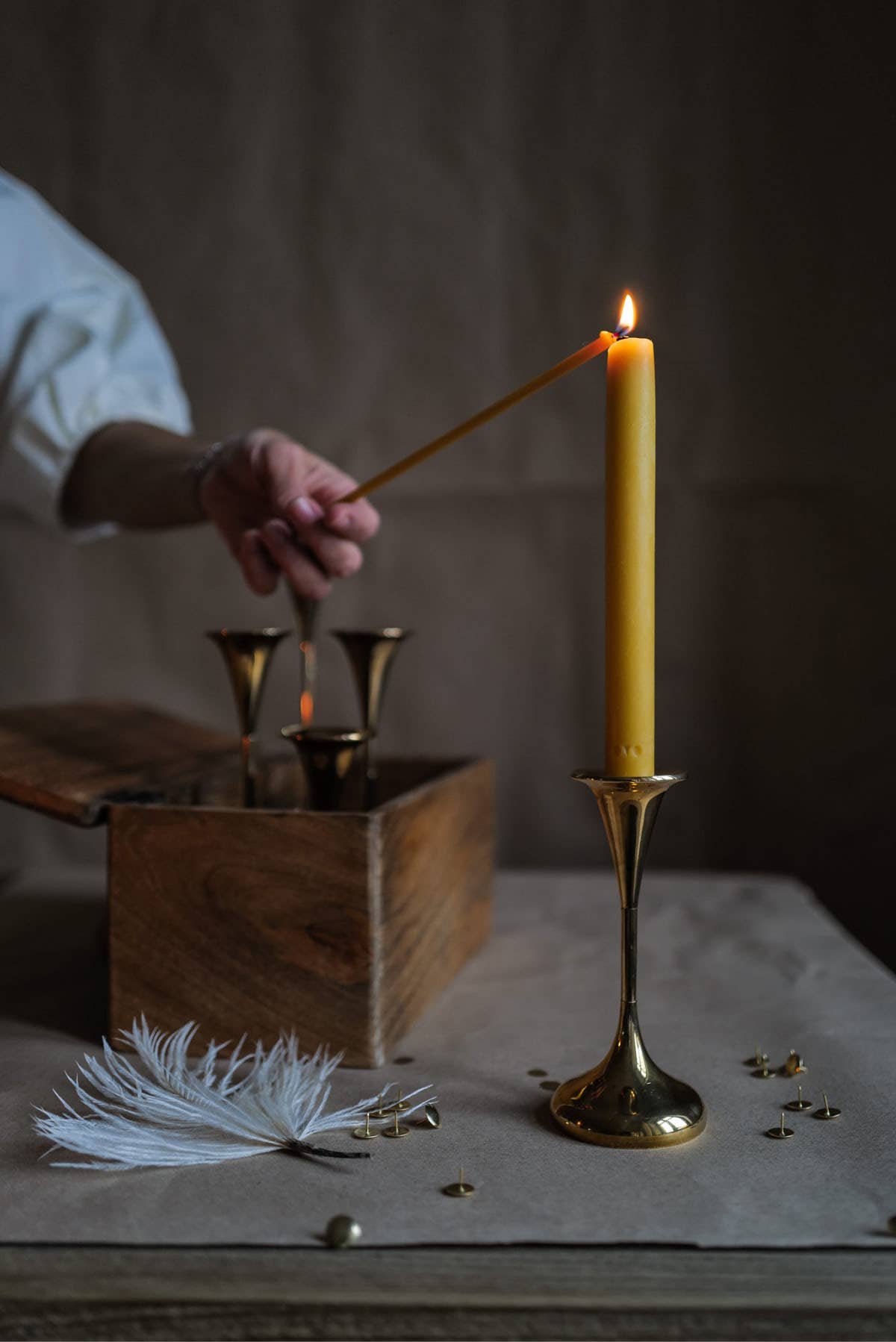 Classic beeswax tapers in regular diameter. They should fit any basic candle holder you have at home. Or take a look at our selection of vintage candle holders to fit them perfectly (coming soon).