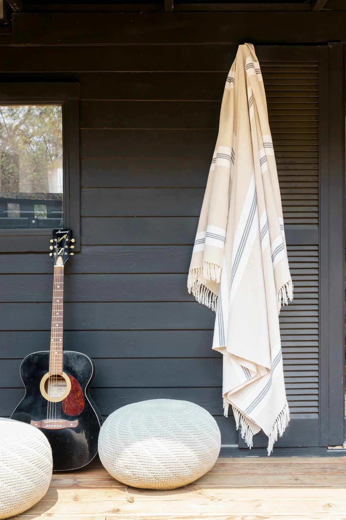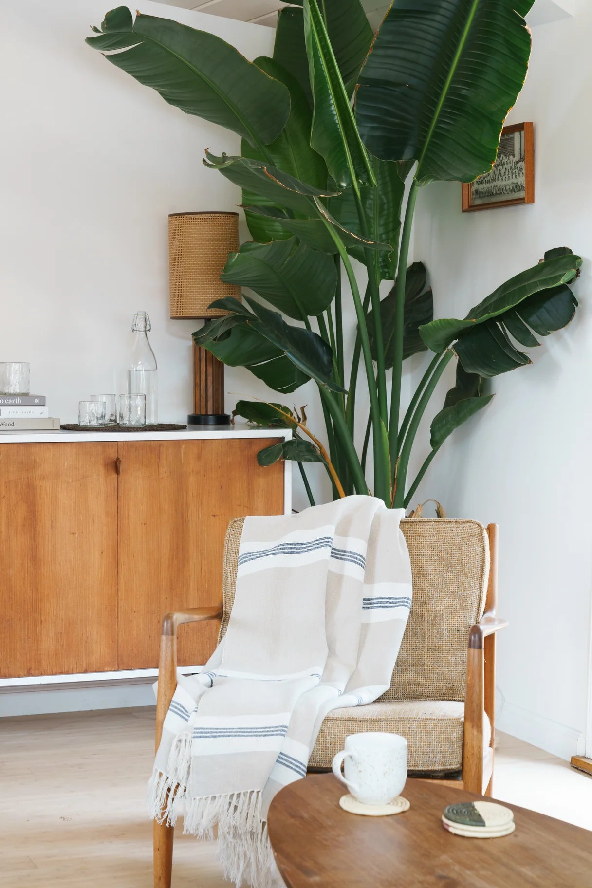 Named after the beautiful and talented wife of Arturo, the founder of the family run weaving workshop where this blanket is handwoven with love and pride in Mexico. This versatile, light-weight blanket is a smart addition to any bedroom or living room with it's clean lines and neutral tones. This weaving cooperative use 100% cotton dyed with sustainable, non-toxic colors.