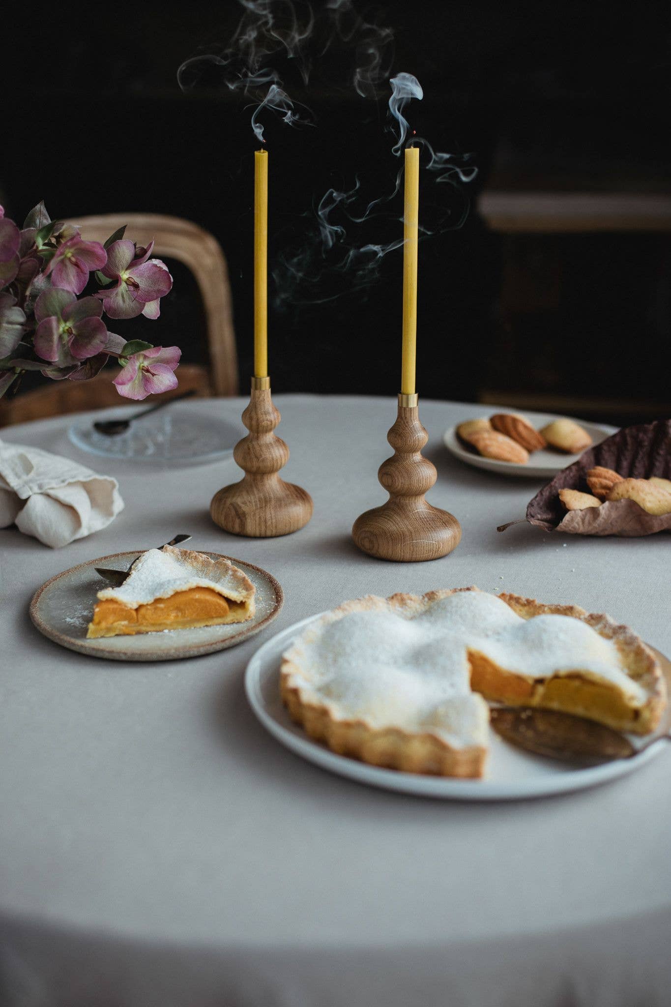 Oiled oak candle stick holder with brass detail. Thanks to the unique design of the detail, it can hold candles of two sizes, any from OVO Things range.